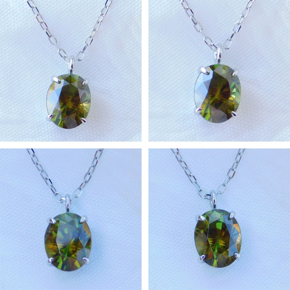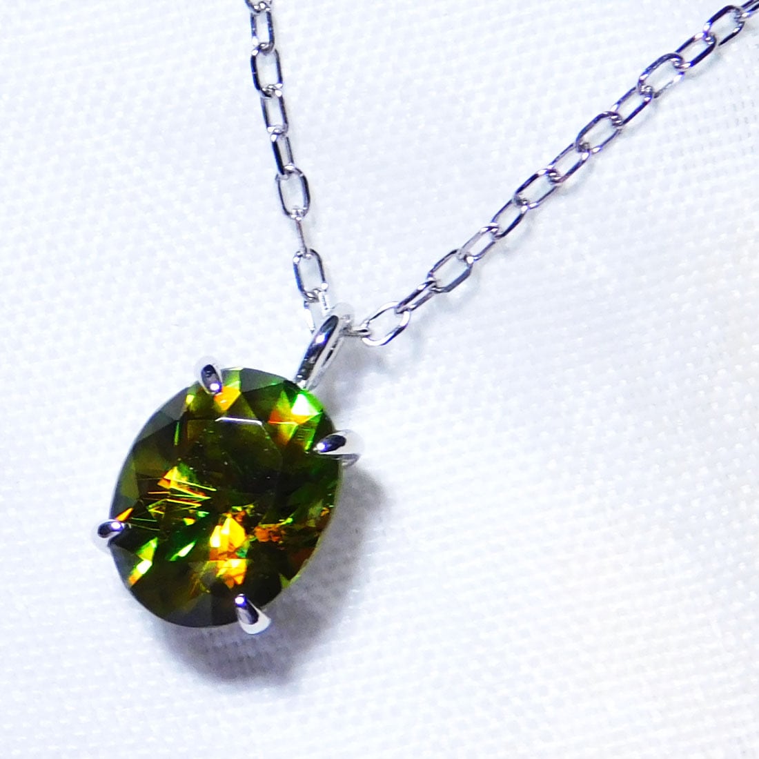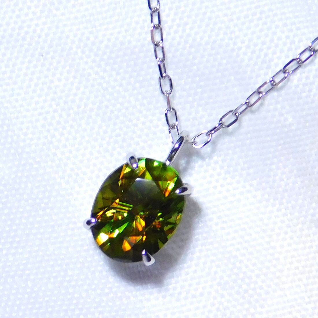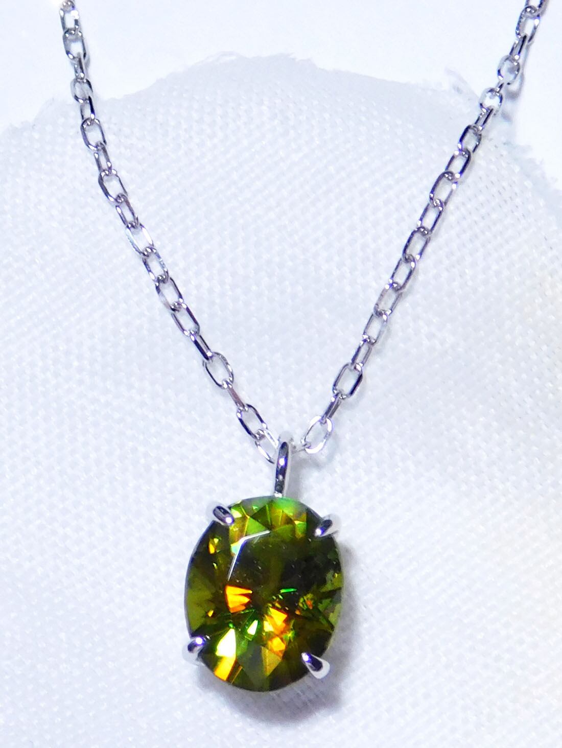 こちらはクロムスフェーンも産出するパキスタン産のスフェーンを使用したプラチナネックレスです
